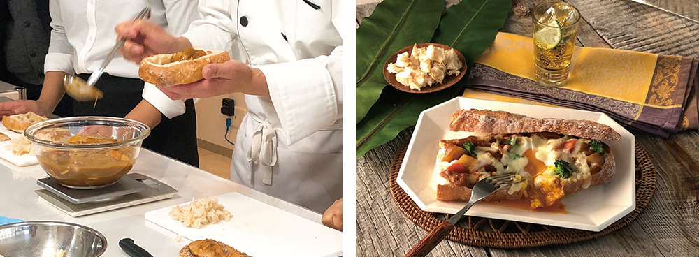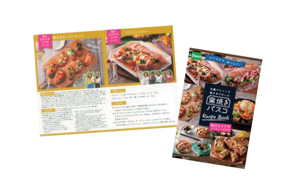 2018年度の取り組みでは、Pasco新商品「窯焼きパスコ 国産小麦のバゲット」を使ったオリジナルレシピを考案。話し合いや試作を重ねて誕生したレシピの数々はレシピブックとして編集され、西日本の敷島製パン取扱い店舗にて配布された。