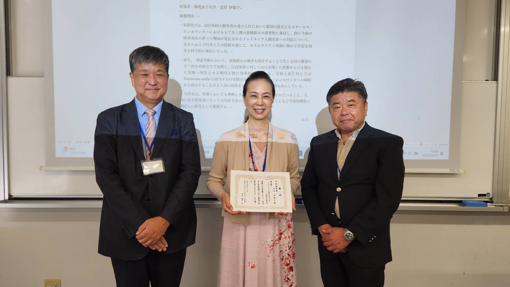 国際英語学科の北村伊都子先生が、日本ホスピタリティ・マネジメント学会第33回全国大会において、「学術振興賞」 を受賞されました!