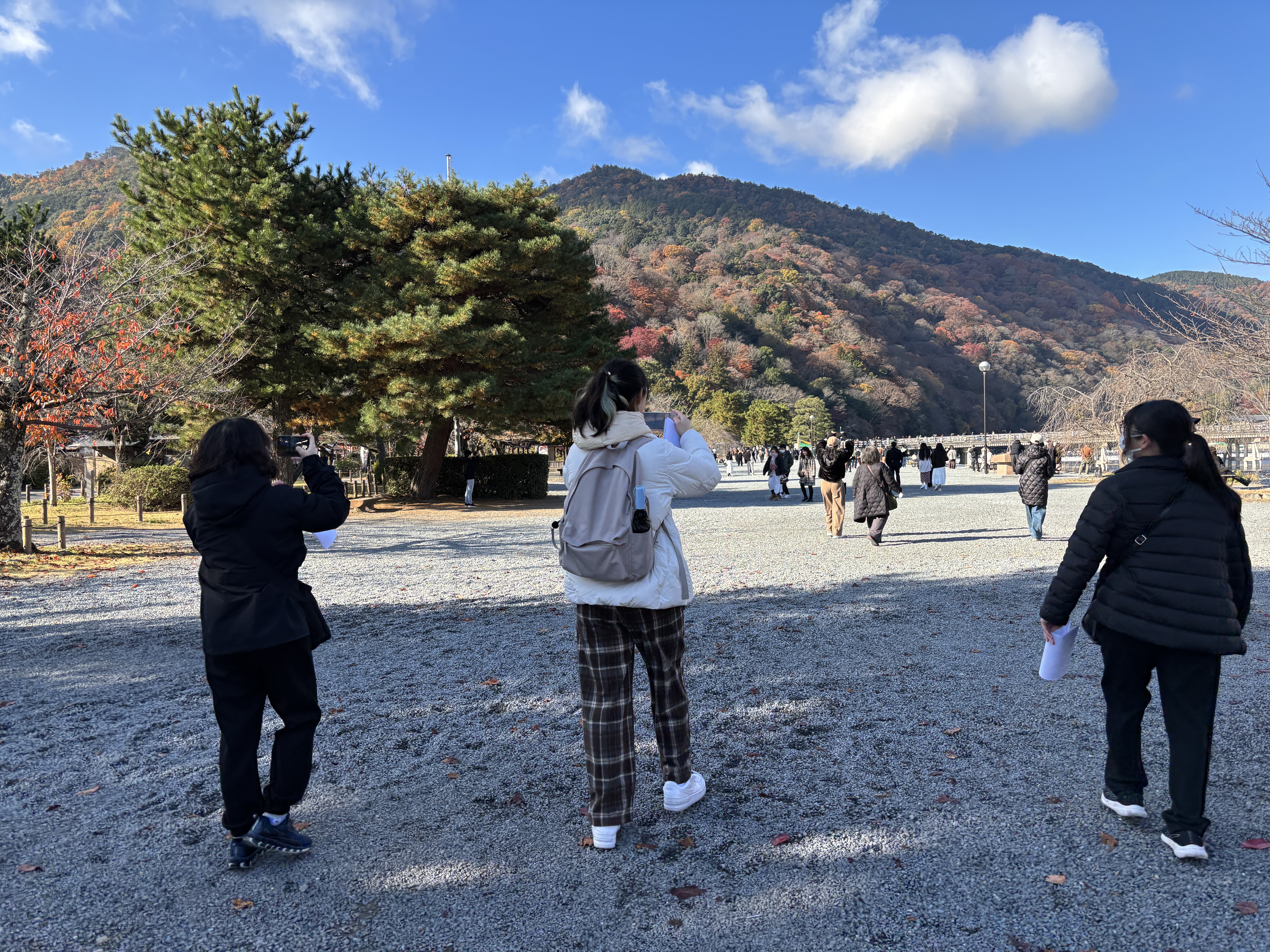 アニメの舞台にもなる嵐山は留学生にも人気で、皆さんカメラを片手に夢中で写真を撮っていました。
