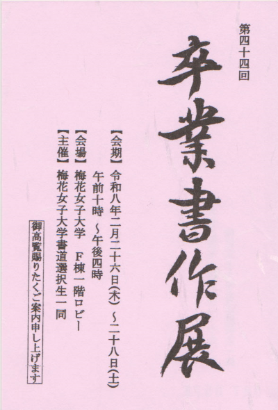 「第44回 卒業書作展」を下記の日程で開催いたします。
