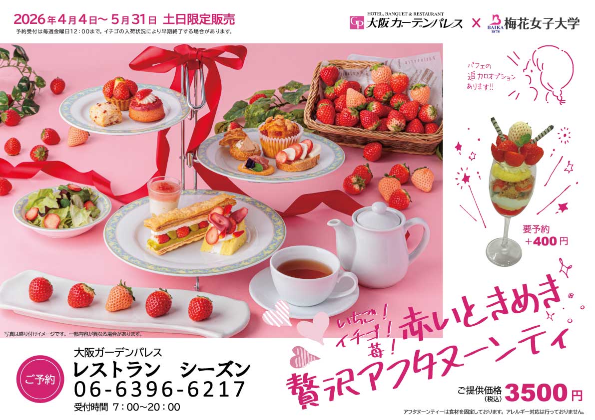 - 梅花女子大学食文化学科×大阪ガーデンパレス「いちご!イチゴ!苺!赤いときめき贅沢アフタヌーンティー」